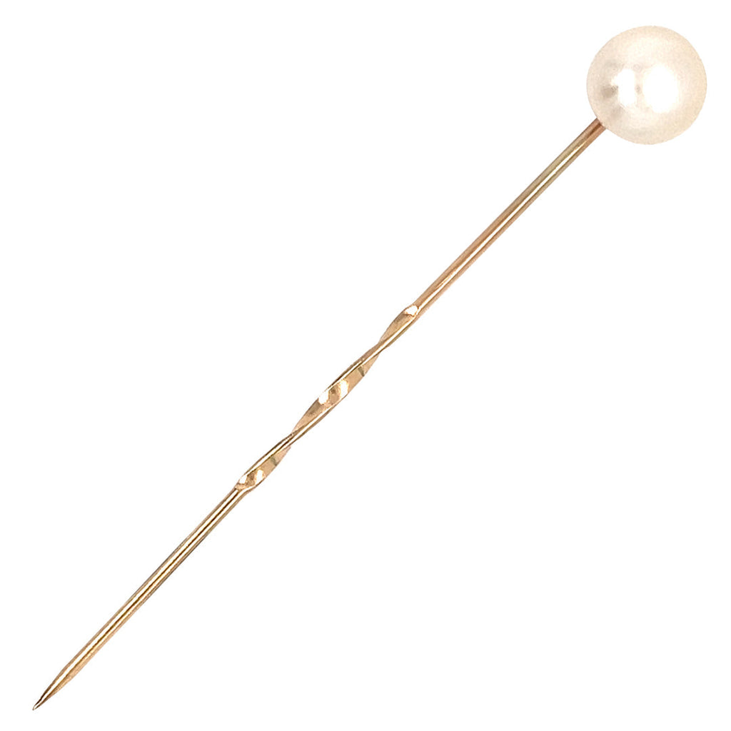 Fresh water cultured pearl on a 9ct gold tie pin.