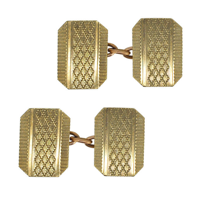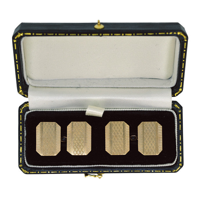 9ct Gold cufflinks with engine turned pattern to the front. Hallmarked Birmingham 1979.