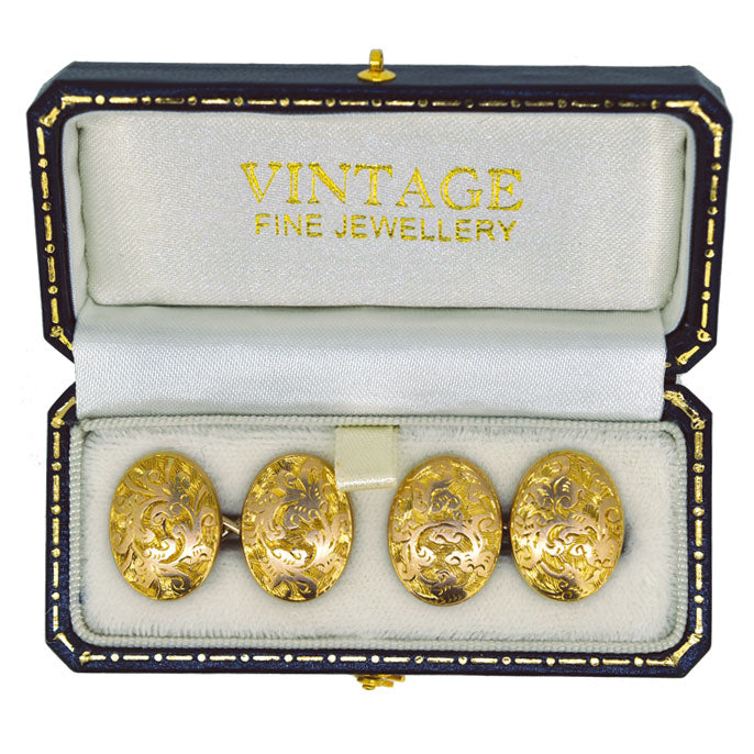 Antique 10ct Gold oval cuff links. Circa 1890.