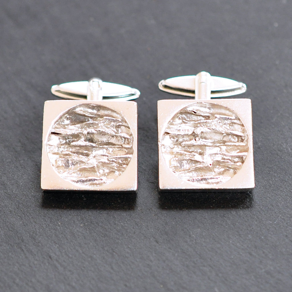 Silver Square 'Barked' Cuff Links