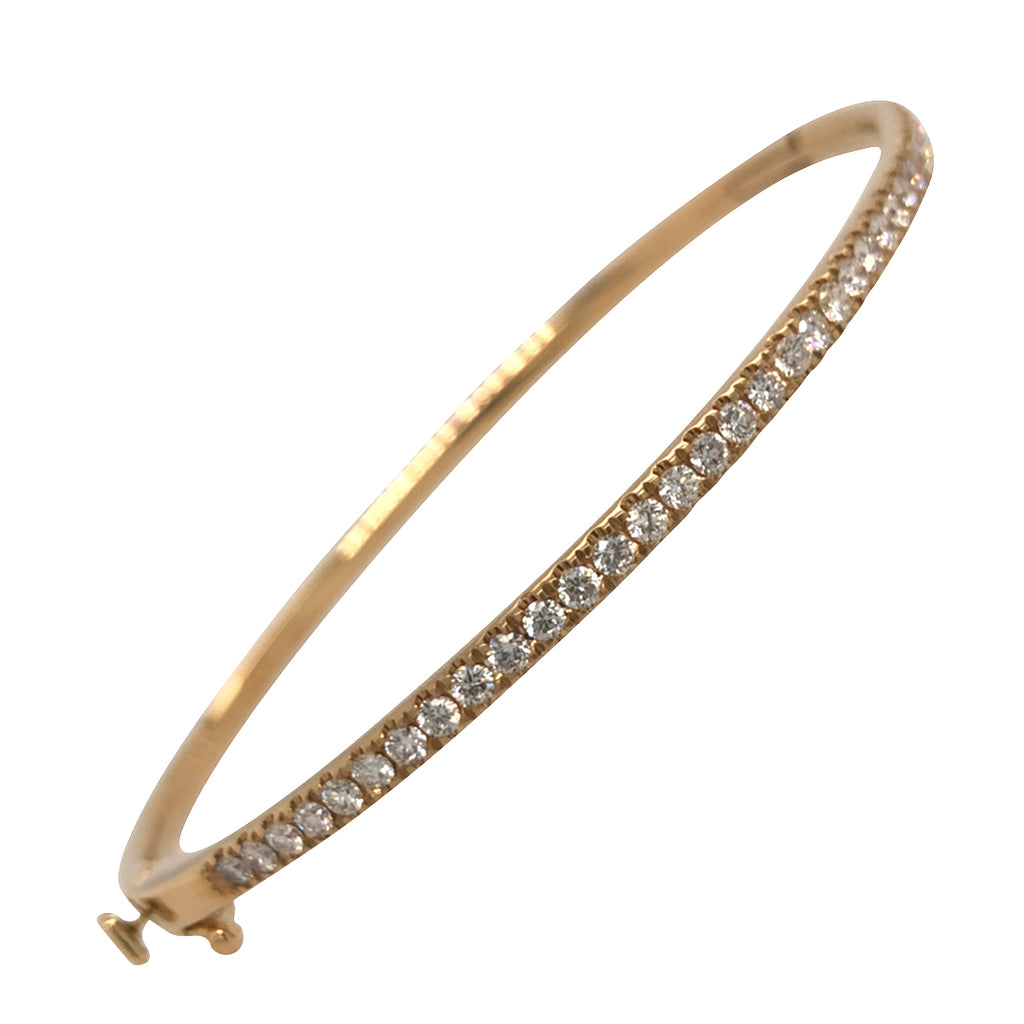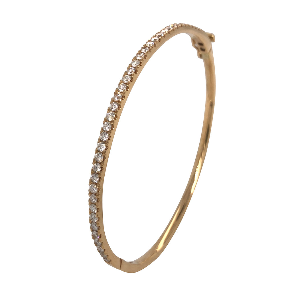 18ct Yellow gold bangle set with 37 diamonds in claw settings (total weight appx. 1.11 cts, colour H/I, clarity VS2/S11).