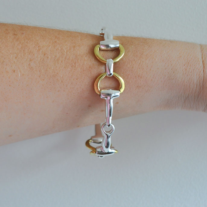 Silver and brass horse bit link bracelet with T-bar clasp. A lovely bracelet in excellent condition. This bracelet is not hallmarked.