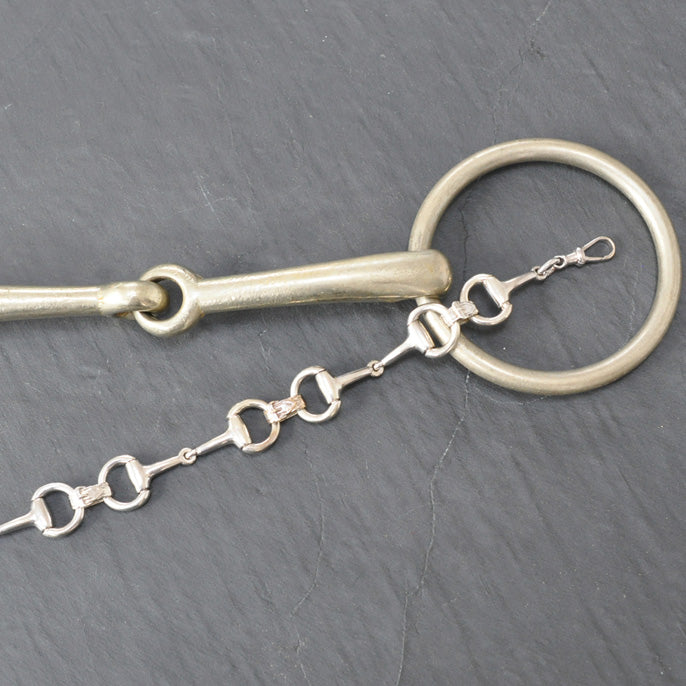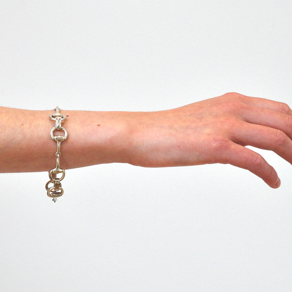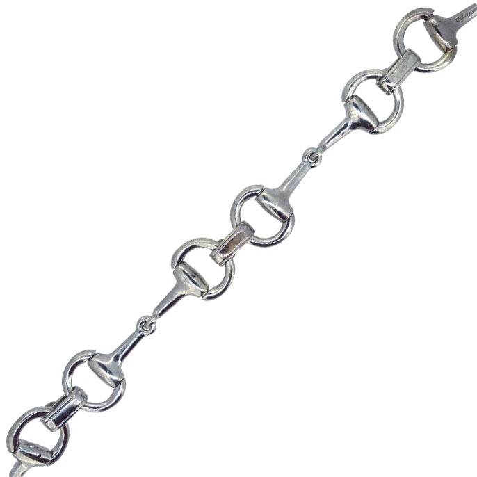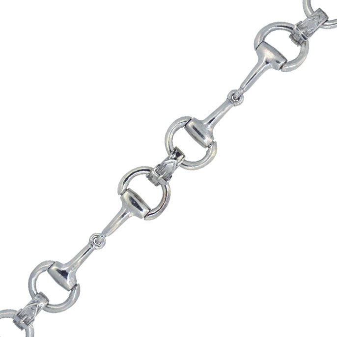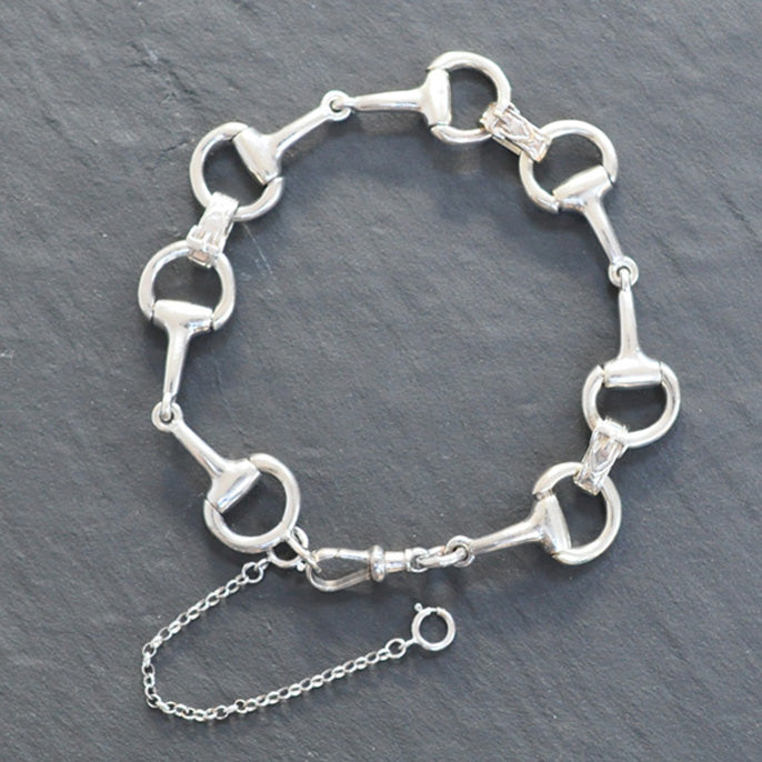9ct White gold horse bit and buckle link bracelet. With safety chain.