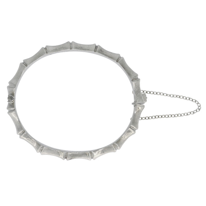 Vintage silver 'bamboo cane' bangle, with safety chain. Hallmarked Birmingham 1978.