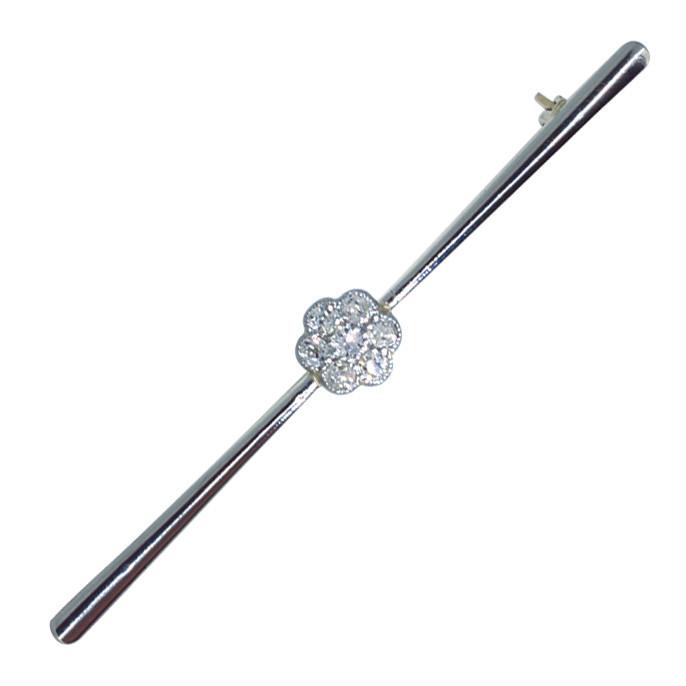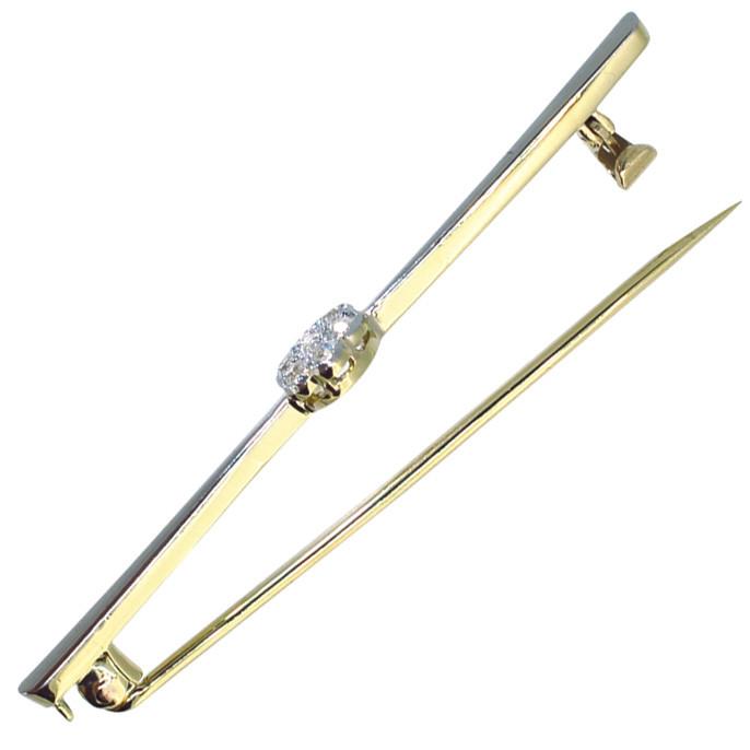 Edwardian Diamond bar brooch. A plain bar with a cluster of seven diamonds (total weight appx. 0.21cts) to the centre, tested as 15ct yellow and white gold, with a safety catch