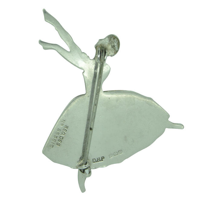 Silver ballet dancer brooch, hallmarked and dated Birmingham 1948