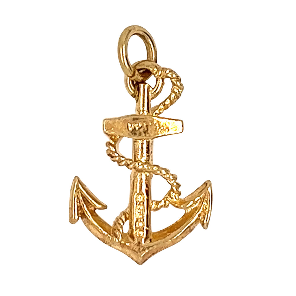 9ct Yellow gold anchor charm. Hallmarked and dated London 1978.