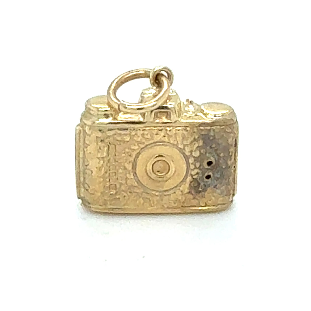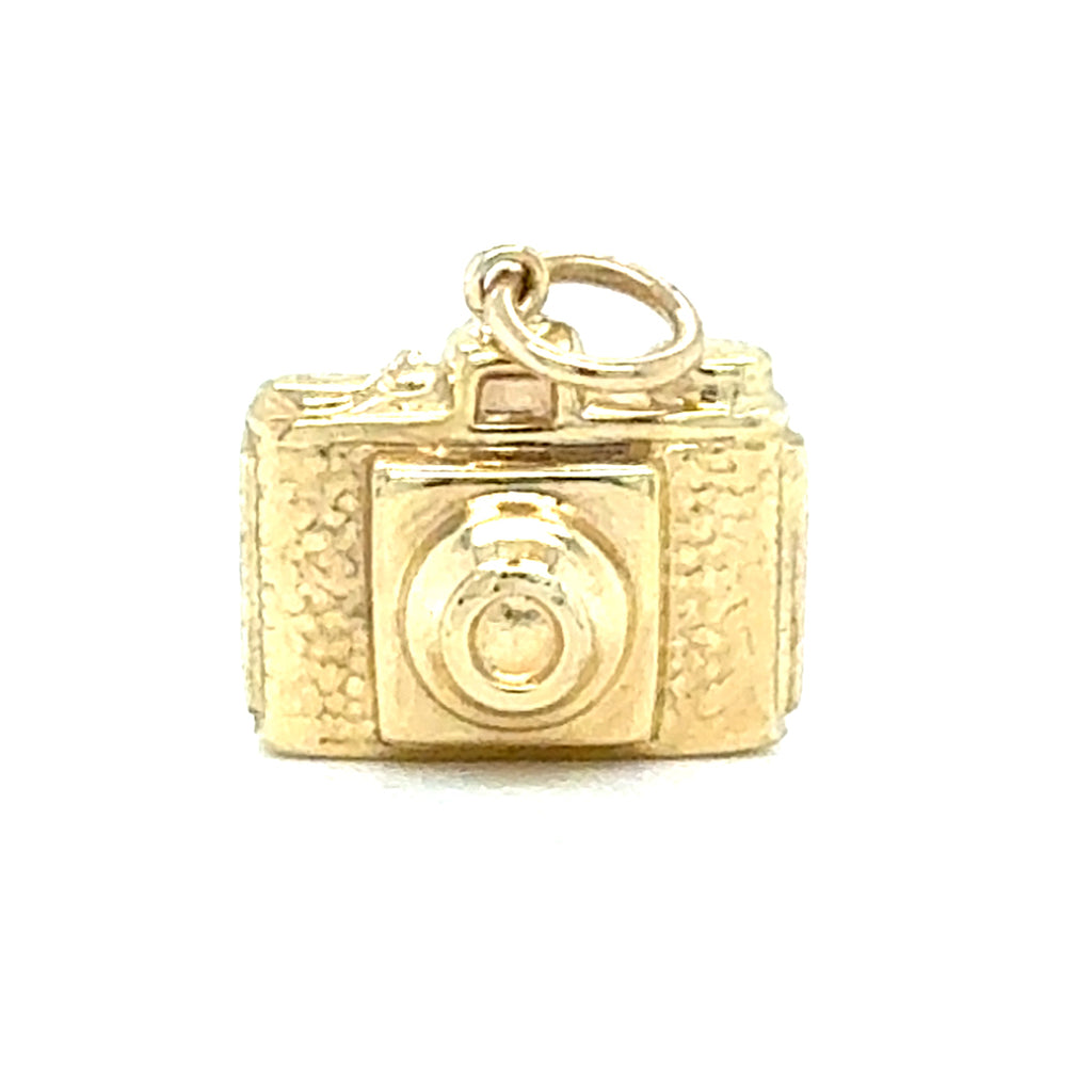 9ct Yellow gold camera charm. Hallmarked and dated Sheffield UK 1976.