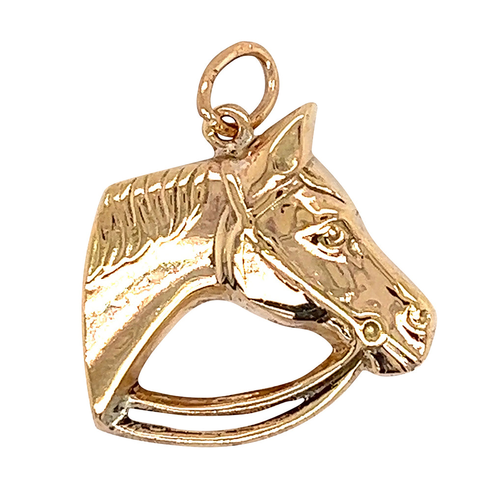 9ct Yellow gold horse head charm. Ideal for a charm bracelet or a pendant to a necklace. Hallmarked and dated London 1979.