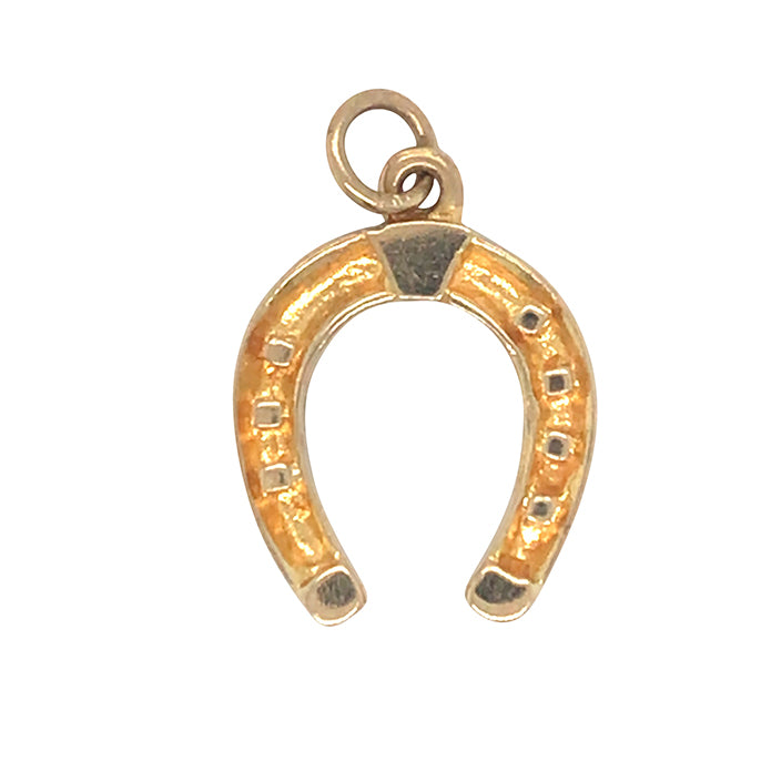 9ct Yellow gold horse shoe charm. Hallmarked and dated Birmingham UK 1963.