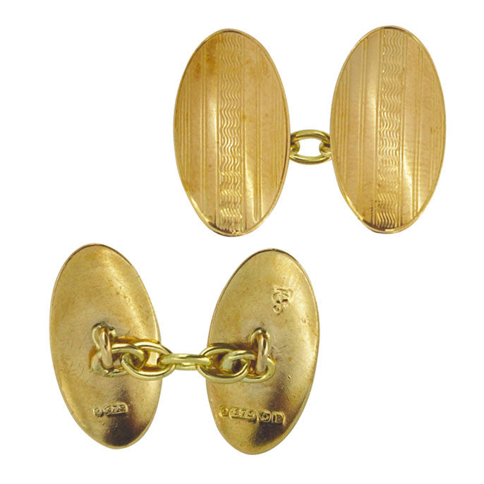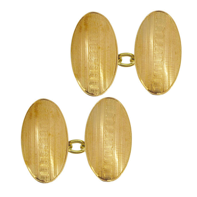Pair of oval engine turned oval cuff links with chain links.