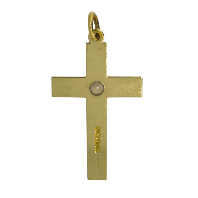 Antique 18ct gold cross with a single pearl set to the centre. Hallmarked Birmingham 1913.