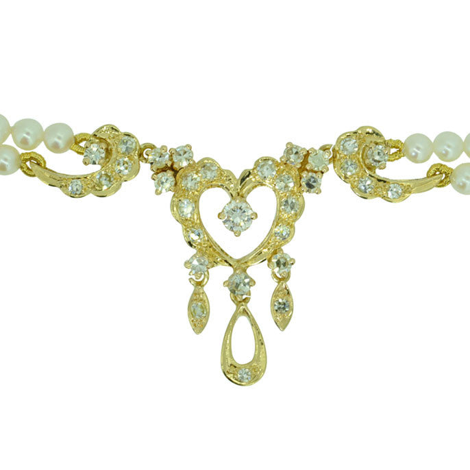 Two rows of uniform cultured pearls (appx. 3.0 mm diameter) with an 18ct yellow gold pendant to the centre set with thirty-one diamonds (total weight appx. 0.70 cts) on an 18ct yellow gold clasp