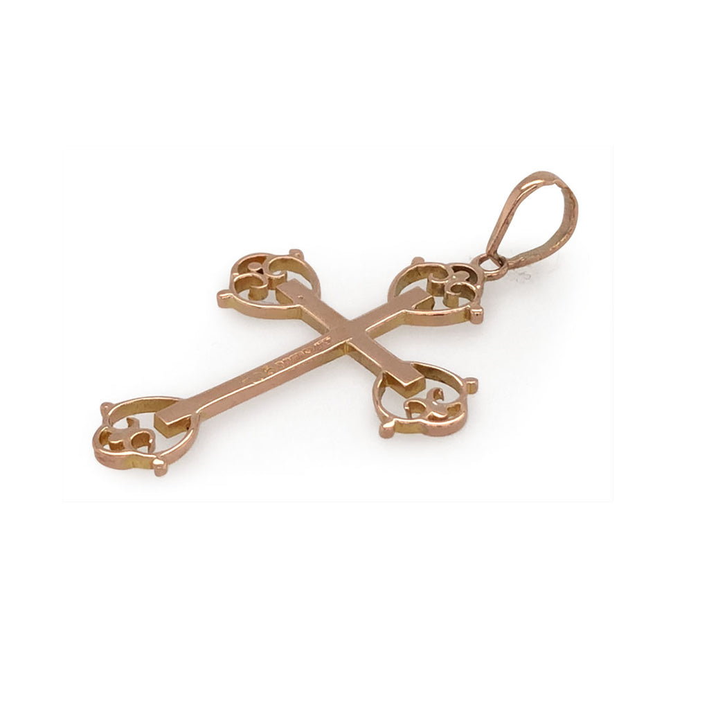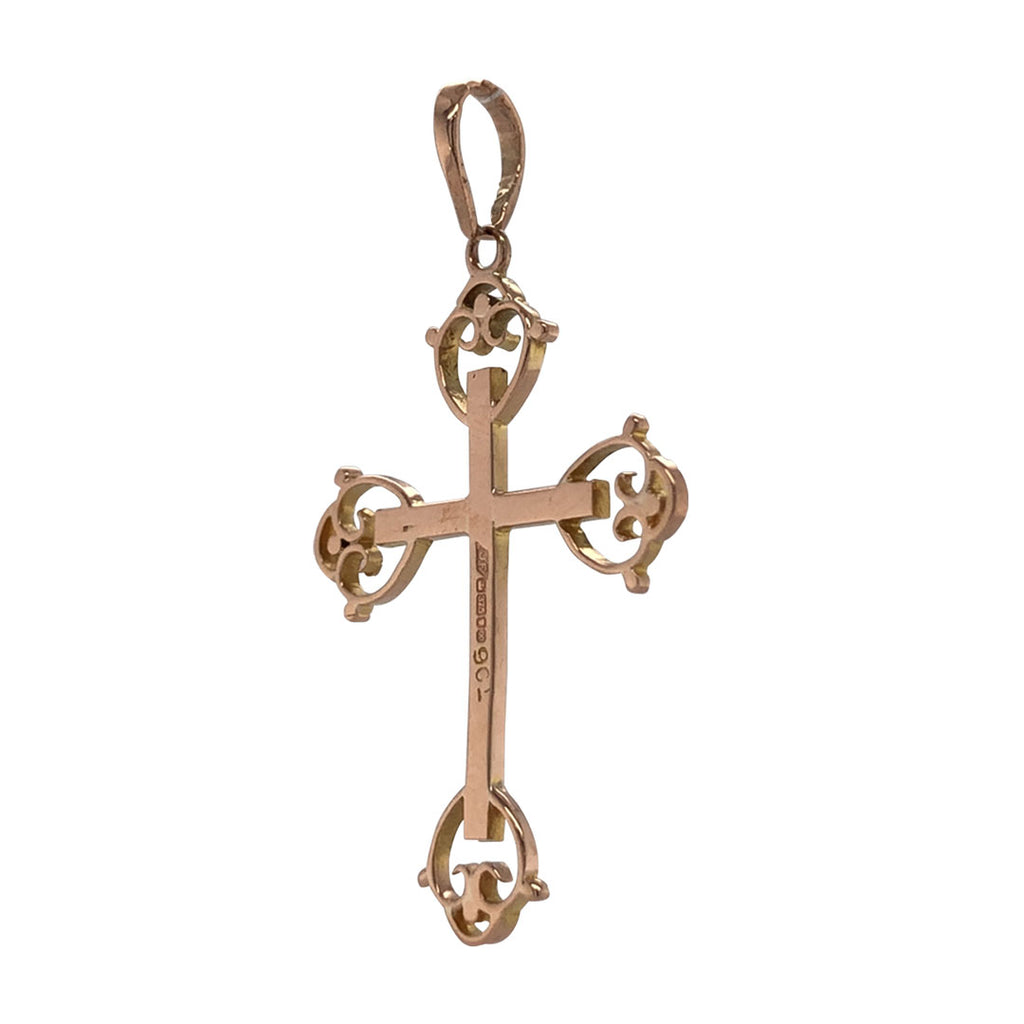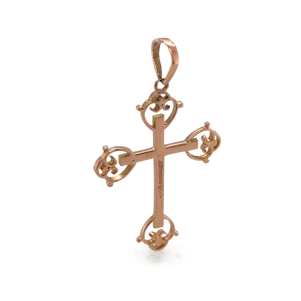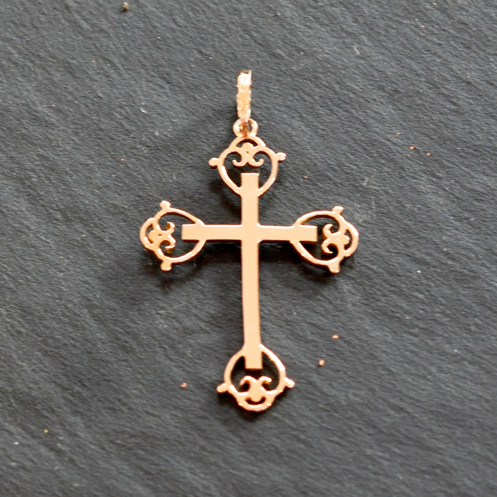 9ct Rose gold cross pedant, with fancy finishing to the cross tips.