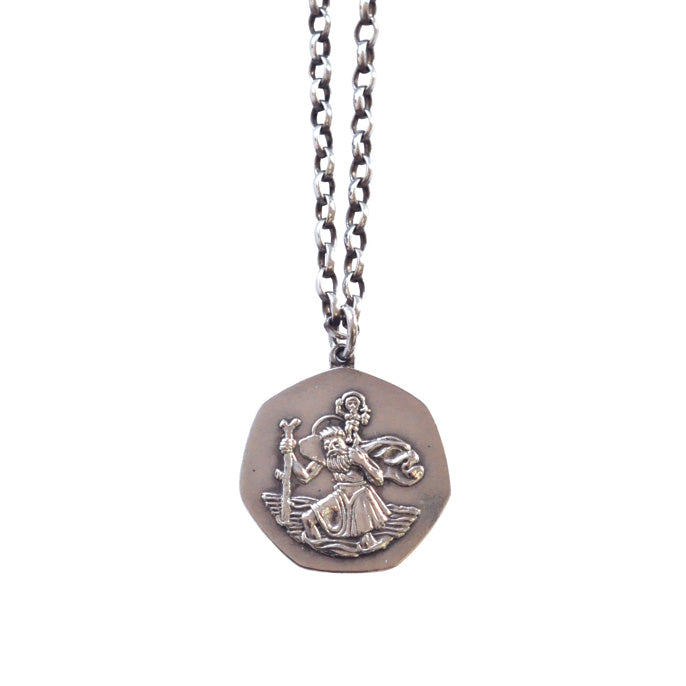 Silver St Christopher pendant, on a chain. Hallmarked and dated Birmingham UK 1977.