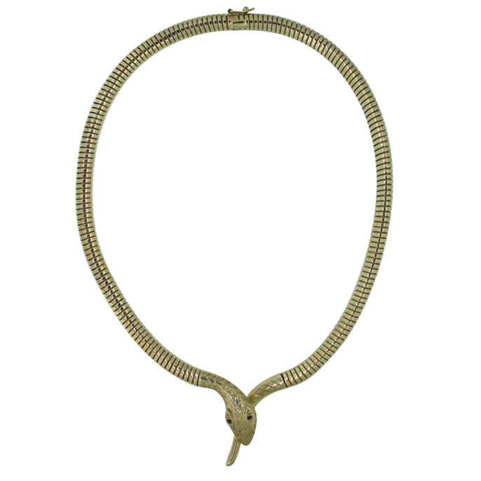 9ct yellow gold 'flexi' snake collar with ruby eyes, circa 1960'