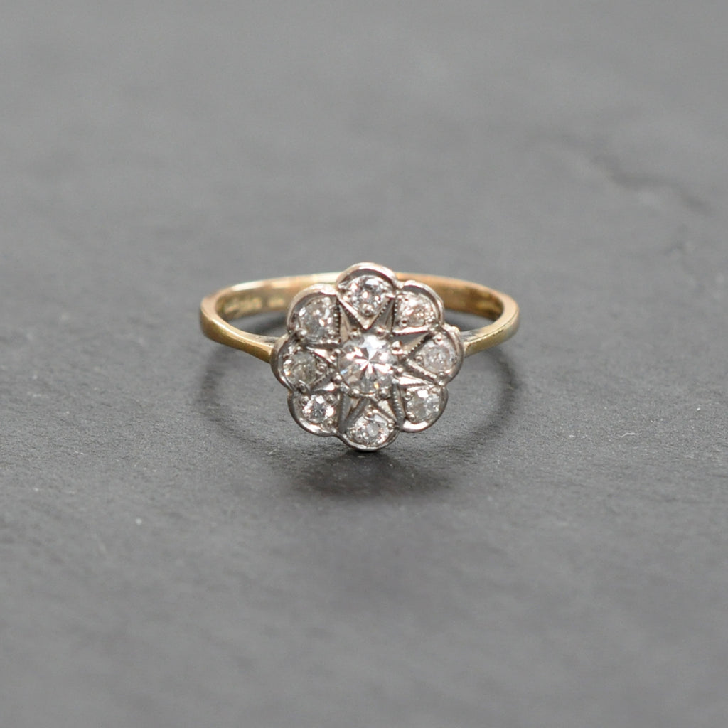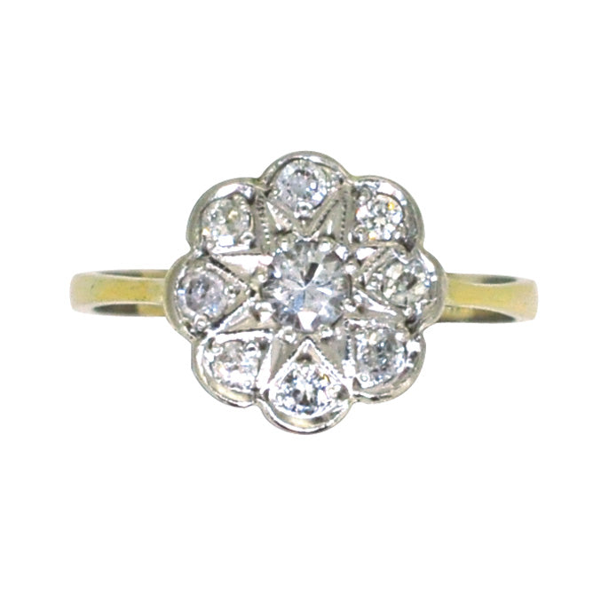 18ct yellow and white gold 9 stone diamond set 'daisy' cluster ring circa 1930's.