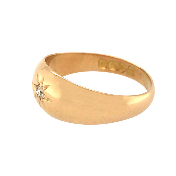 18ct yellow gold band with a single diamond set to the centre. Hallmarked and dated Chester UK 1912.