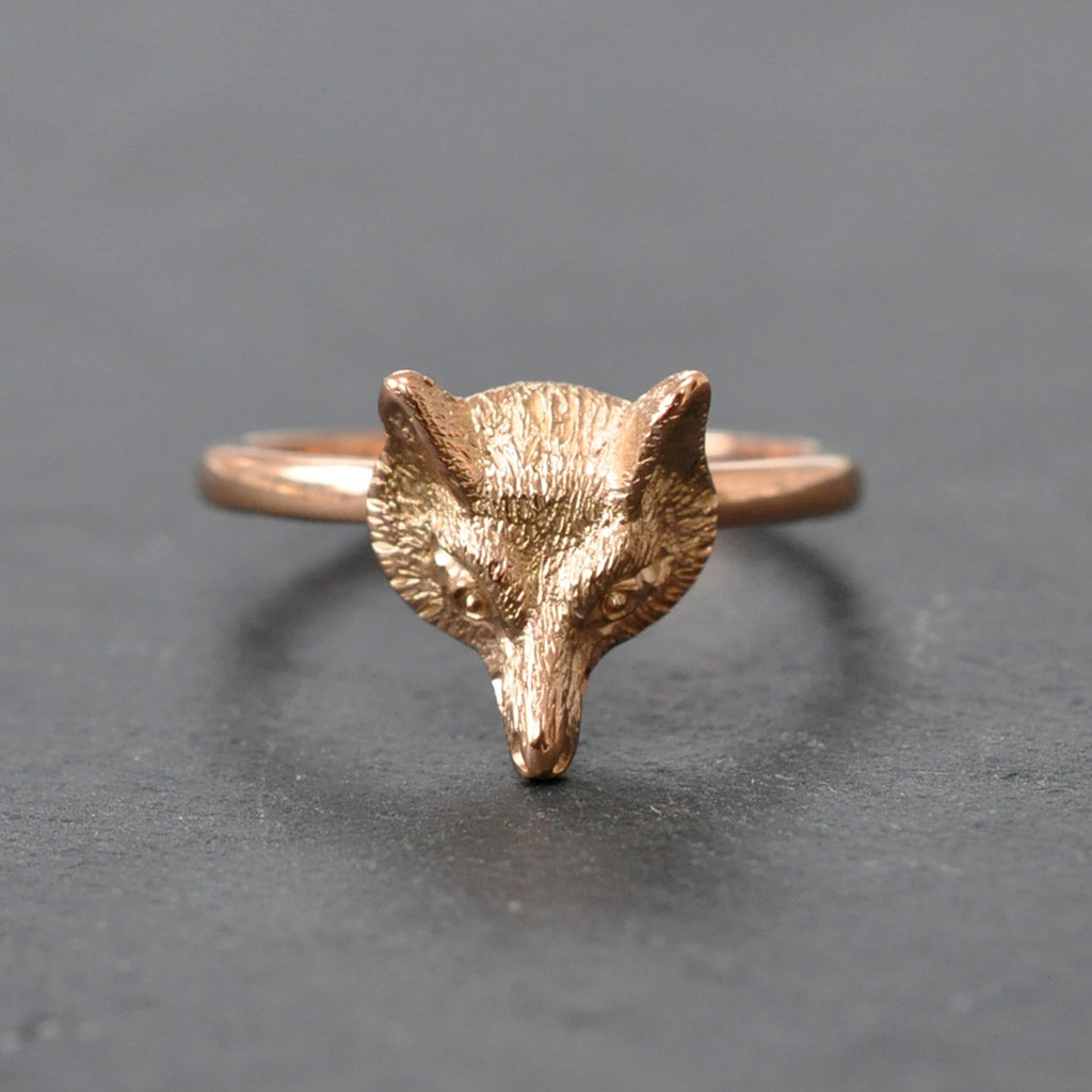 9ct Gold fox head, circa 1900. The antique gold fox head is set to a modern gold ring.
