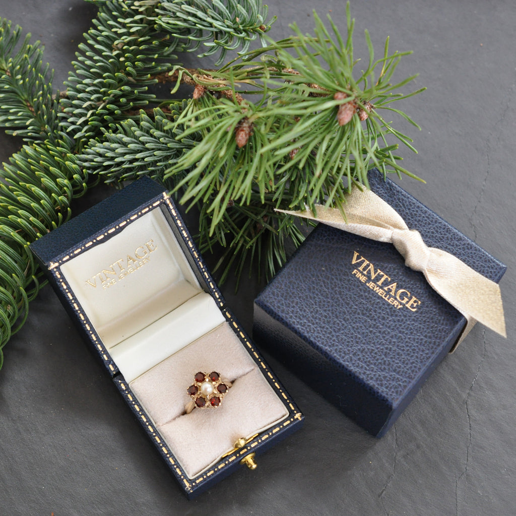 Garnet & Pearl Cluster Ring