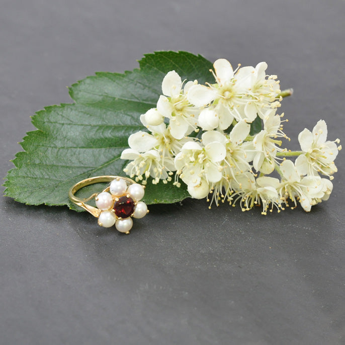 Garnet & Pearl Cluster Ring