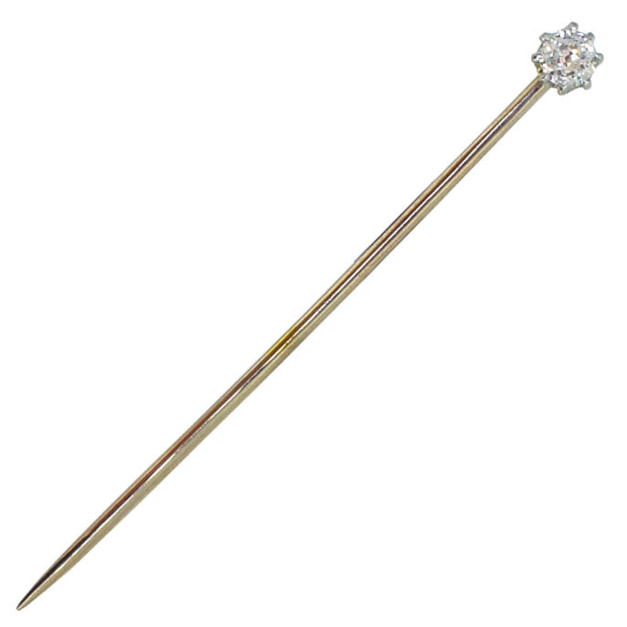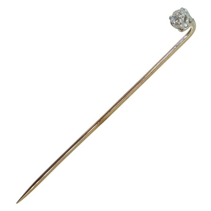 Victorian diamond tie pin (appx. 0.15 cts), tested with acid as 15ct yellow and white gold, circa 1880.