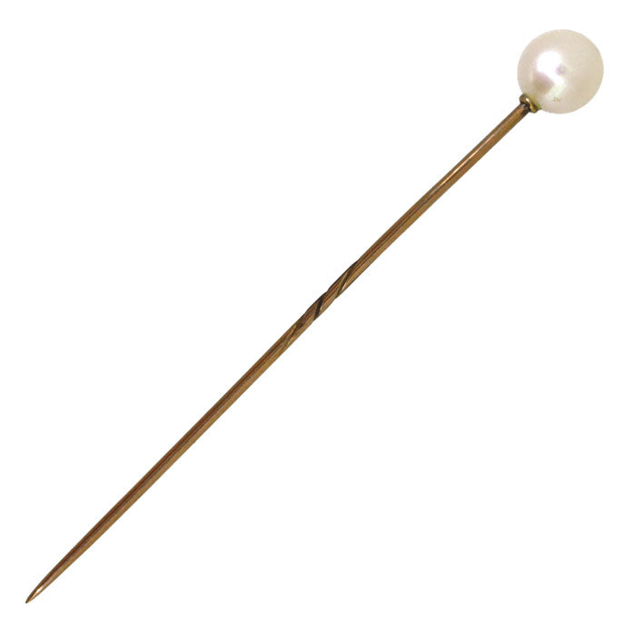Single cultured pearl set to a 9ct gold pin circa 1900.