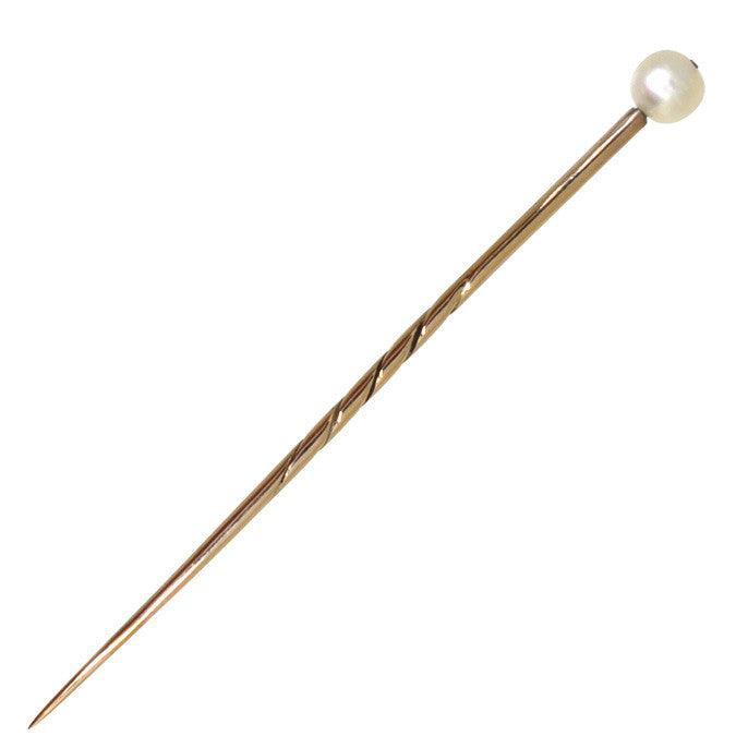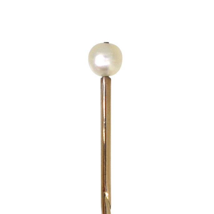 Single cultured pearl set to a pin tested as 9ct gold. Tested as act gold, Circa 1900.