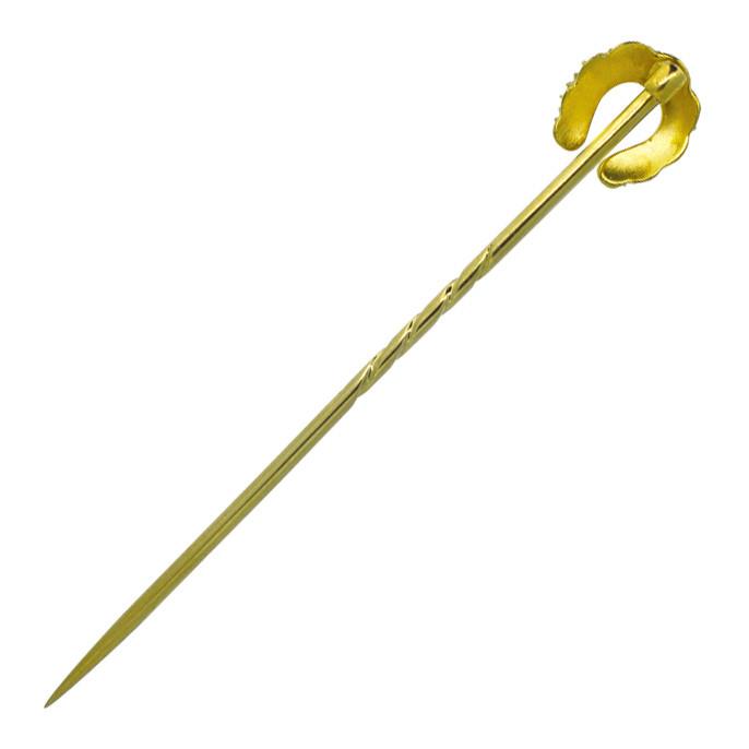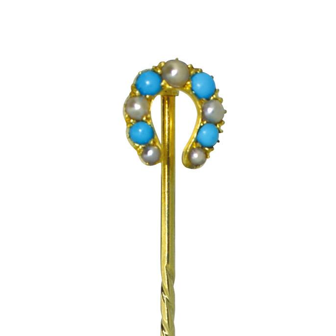 Victorian Stick Pin in the form of a Horse Shoe set alternatively with pearls and turquoise, tested with acid as 9ct yellow gold, circa 1890
