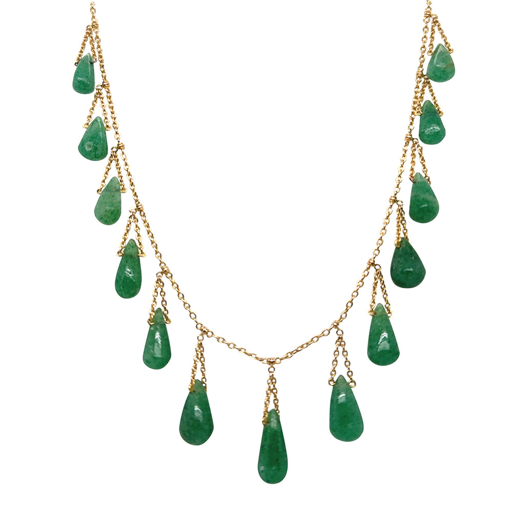 Victorian 15ct gold trace chain with 13 aventurine gemstones in a fringe collar.