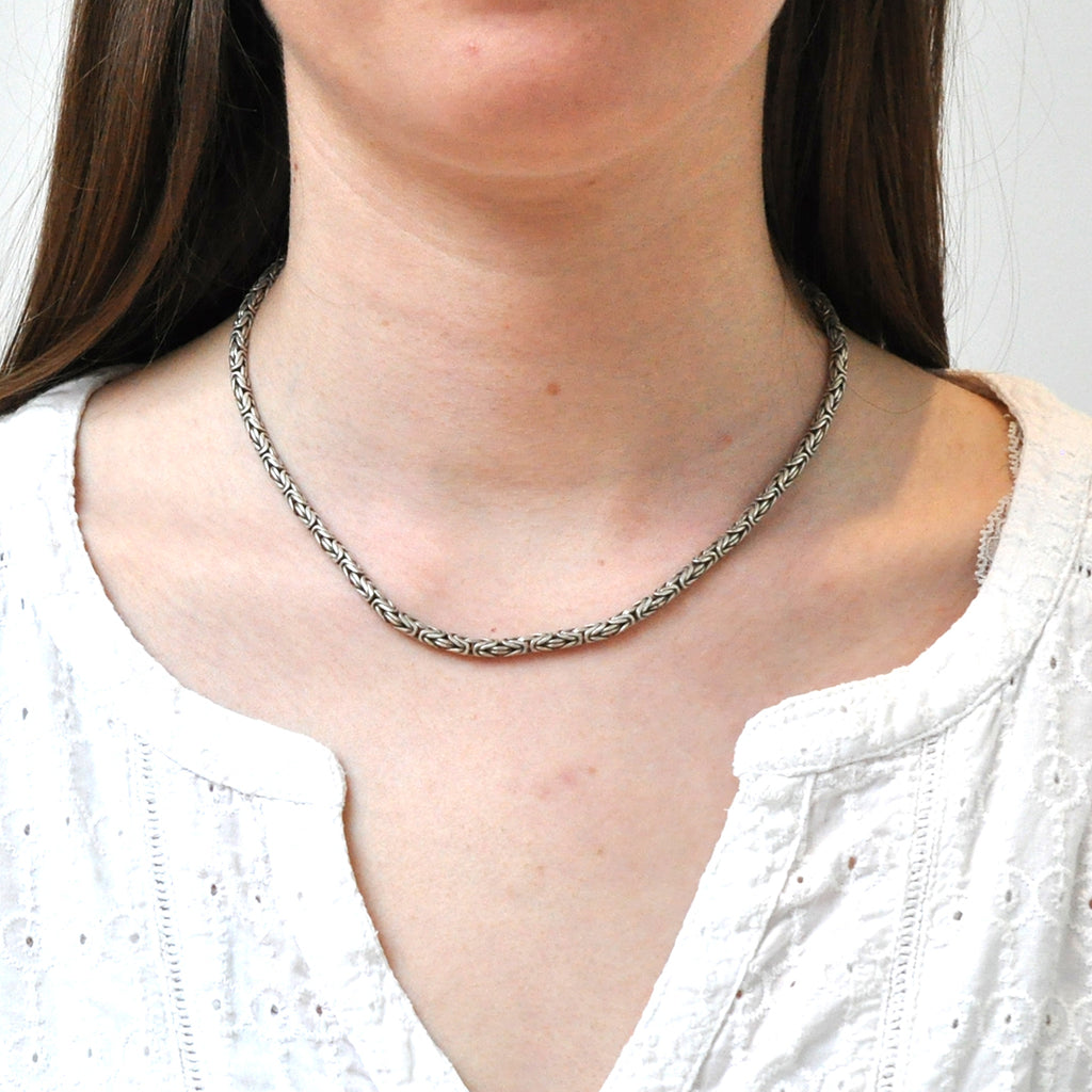 Silver 'bysantine' link neck chain. Circa 1970.