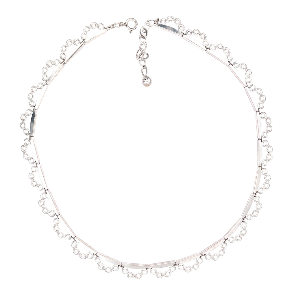 Stylish silver fancy link edge collar necklace. Hallmarked and dated London 1974.