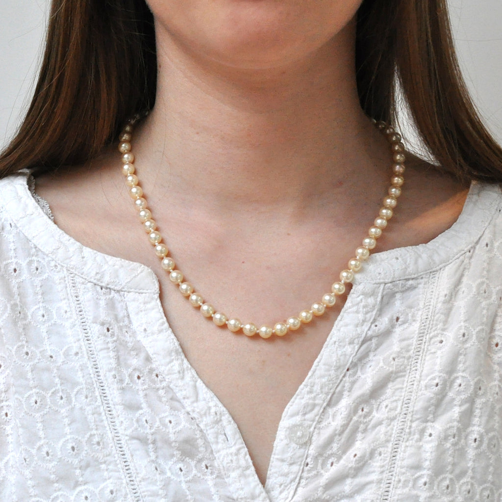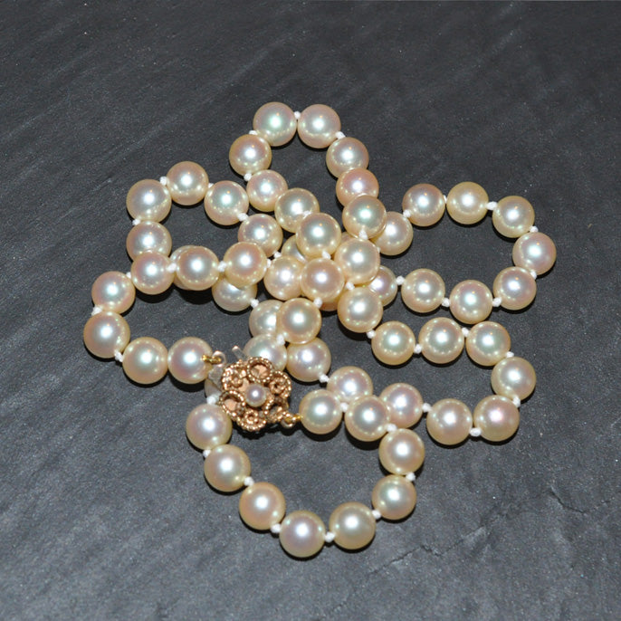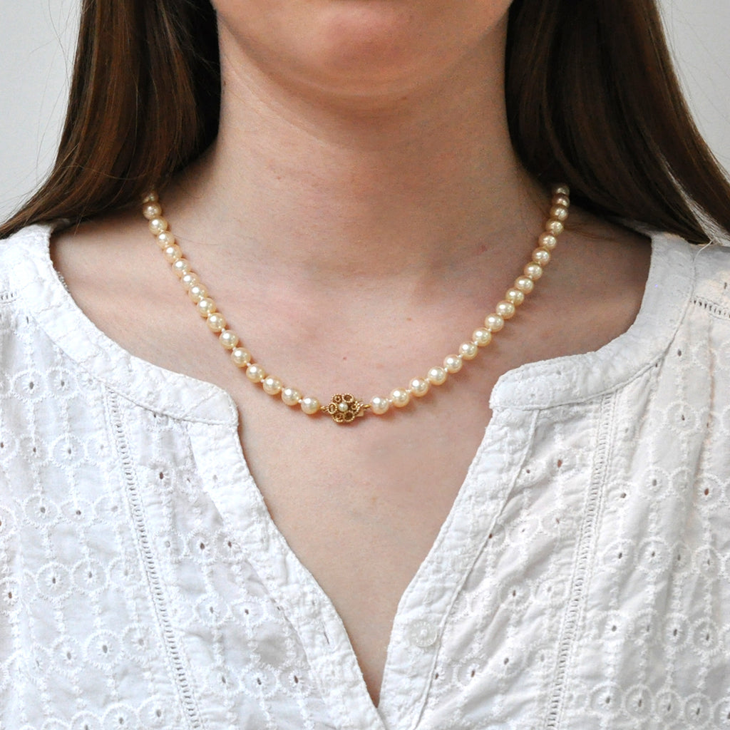 Pearl Necklace with Yellow Gold & Pearl Clasp