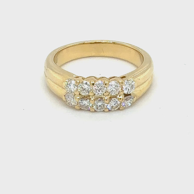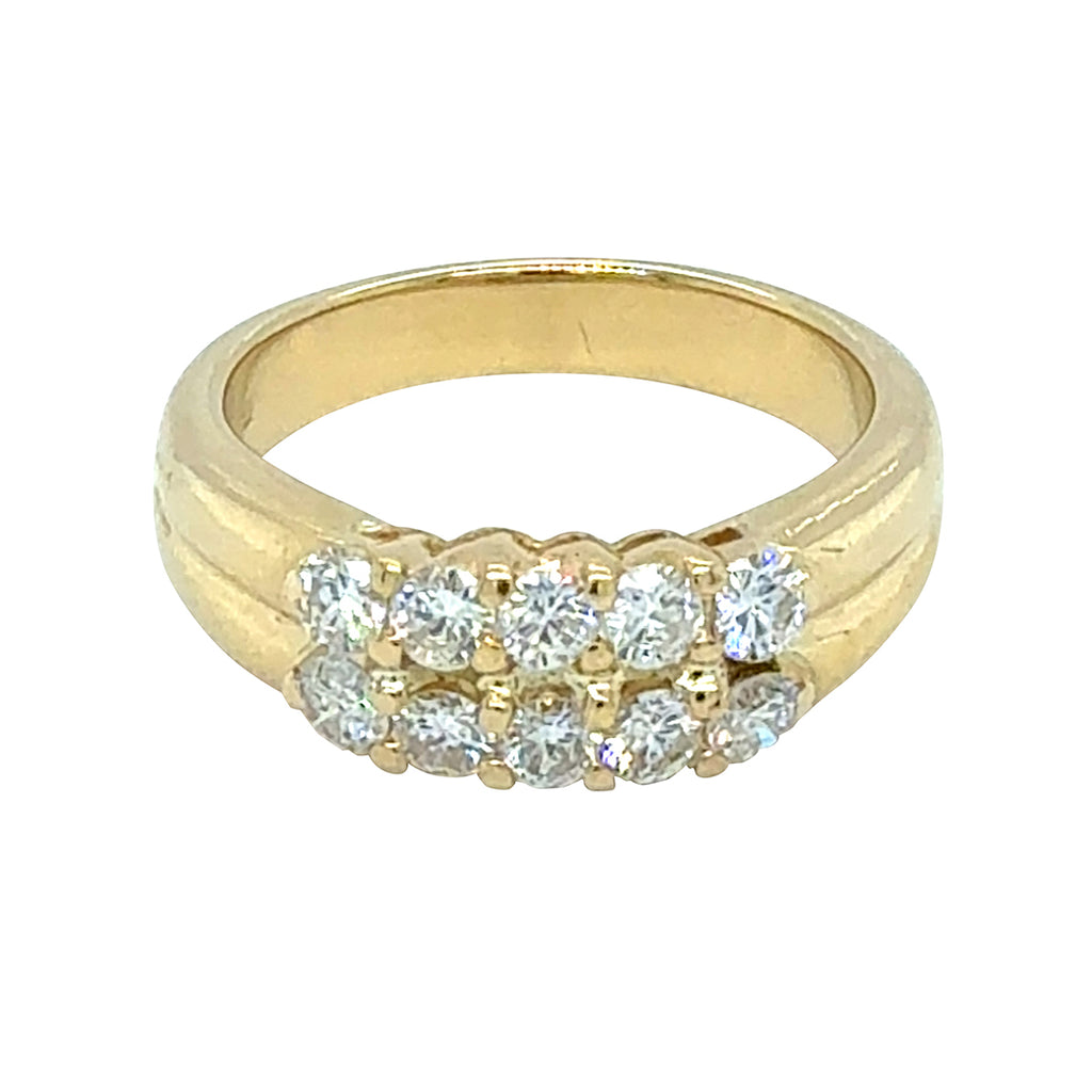 18ct yellow gold ring with two rows of diamonds (10 x diamond total weight approximately 1 cts, colour H, clarity SI1). Circa 1960s.